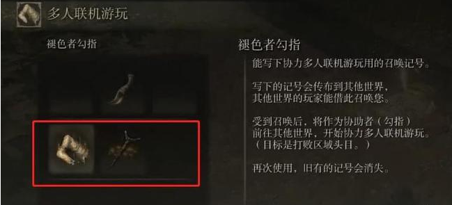 玩家想帮助别人的话,需要使用道具【褪色者勾指】,使用之后,玩家可以看到原地上面有一个金色的记号,其他玩家在自己的世界都能看见这个记号,有玩家激活它的话,你就会被召唤过去。
