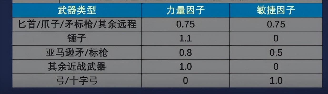 在武器的伤害具体换算加成方面,刺客职业惯用的匕首,爪,标枪,长矛,投掷类武器,均能够享受75%的力敏加成,也就是说你提升了1点力量或敏捷,武器伤害值也会随之提升0.75。野蛮人常用的锤子类武器,则有110%的力量加成,不另外享受敏捷加成。亚马逊职业专用的长矛,标枪等武器,则会享受到80%的力量加成,以及50%的敏捷加成。弓弩类武器不受力量加成,而受到全额的敏捷加成。