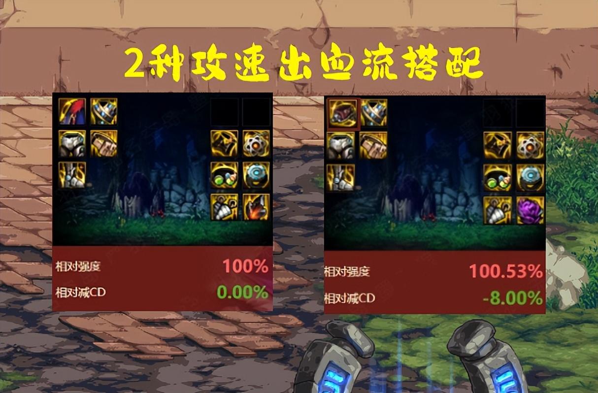1、攻速出血流,以蓝灵石上衣和攻速鞋为核心,伤害9.5分、冷却9分、功能性拥有很快的速度,实战体验非常棒,唯一缺点是需要凑齐140%攻速,对小号角色仍有一定难度。