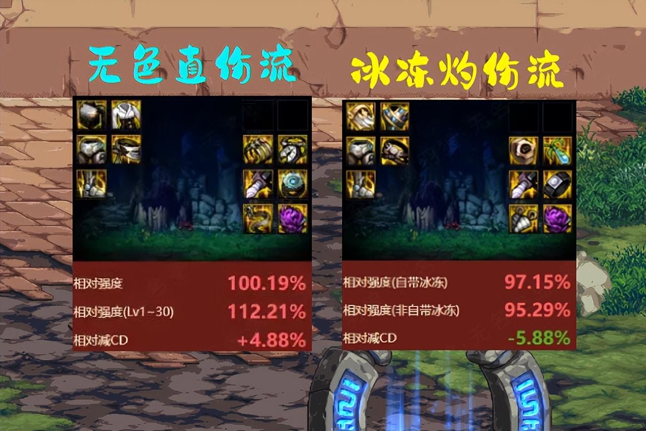 10、灼伤冰冻流,依旧以灼伤腰带和冰冻项链为核心,不过加入攻速鞋之后强度更高了,伤害9.4分,冷却9.2分,比较推荐给自带冰冻效果的职业。