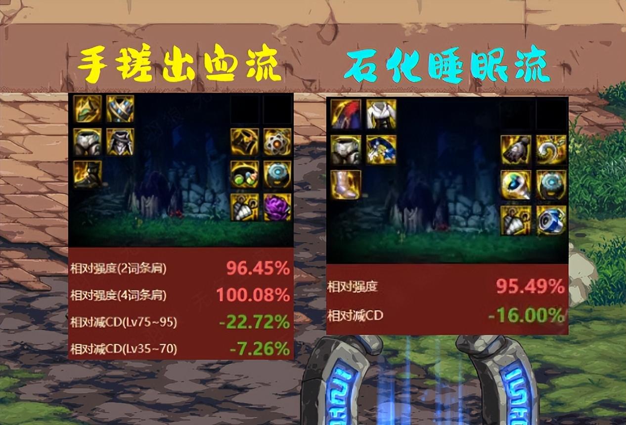 (2)石化睡眠流,基本持平了攻速系列,用略低伤害换来更多冷却,适合没有攻速的小号;