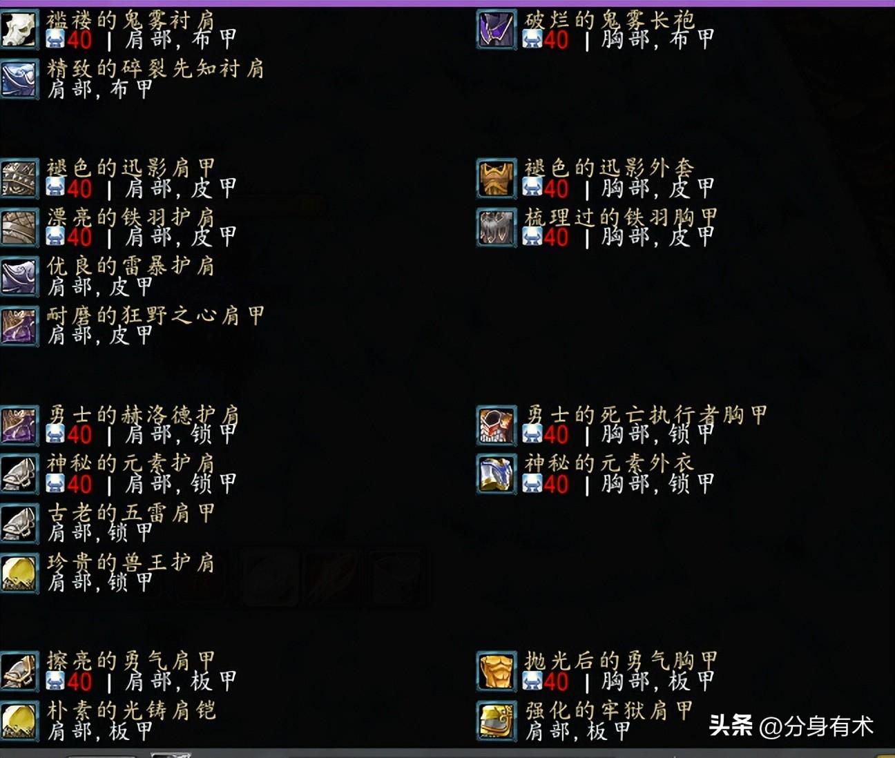 第二个传家宝就是肩膀了,肩膀除了提供属性外,还可以提升10%的打怪经验和任务经验,包括战场的经验也能提升,所以小号想快速升级,传家宝肩膀是不能少的,获取方法同样是英雄纹章兑换,或者岩石守卫者的碎片。