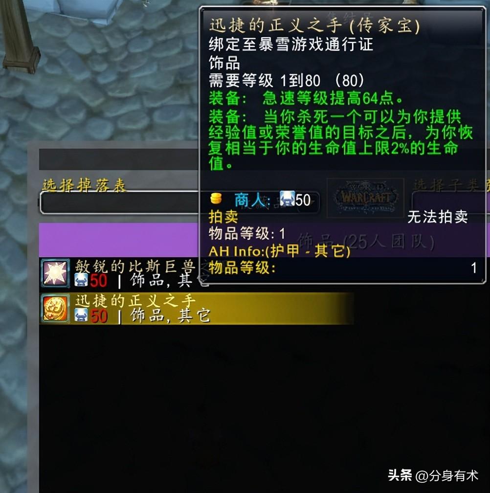 第四个传家宝就是饰品了,这个获取方式是50个英雄纹章,在怪物死亡后可以恢复最大生命值的2%,可以让我们小号打怪更加的效率,饰品的效果主要有两个第一个就是常驻急速属性,第二个就是常驻法术强度属性,这样看来暴雪是比较偏心的,毕竟法系可以带2个传家宝饰品,物理职业只能带一个急速属性的。