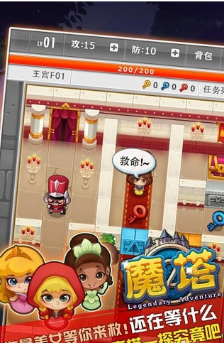 《魔塔》手游里面其中人物的设计偏向卡通风格,很是可爱,而人物走动和打斗的动态场面很是流畅。这时候你需要扮演一个勇敢的王子去揭穿王后拯救公主,整个国家等你来拯救。游戏画面采用了2.5D模式,版面明亮色彩丰富,有很不错的层次感给玩家带来不错的画面感受。人物设计可爱,操作简单,而且采用全新的楼层制让玩家来回奔波寻找钥匙,这更激起了玩家的探索欲望。