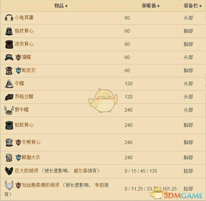 《饥荒》中有温度的概念,国度过高和过冷都会扣血,冬天来临之前,玩家首先要解决的就是保暖问题,有许多保暖物品,许多玩家还不清楚他们的保暖值是多少,下面小编就为大家带来一篇“lost回忆js”分享的全保暖物品保暖值一览,一起来看看吧。