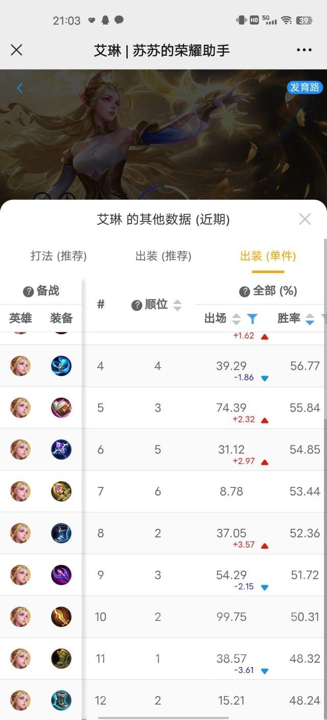 通过苏苏的荣耀助手我们可以看到,法穿鞋的胜率全面超过护甲鞋与韧性鞋。这是由于高分段普遍都是遇事不决抵抗鞋,很多时候对面前期会有3-4双抵抗鞋,这时候常规64法穿艾琳遭到削弱,而出法穿鞋则依旧可以在敌方出大型魔抗装之前获得接近真伤的效果。
