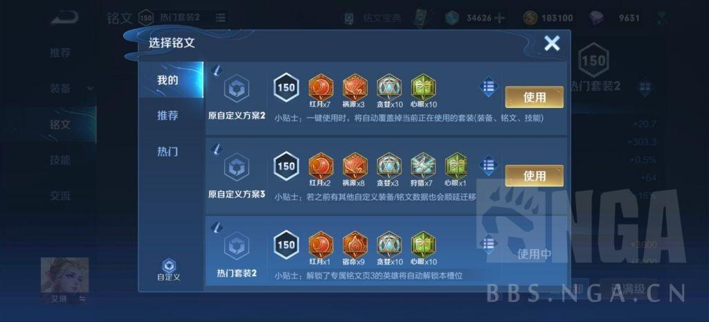 3套出装按顺序的铭文,攻速未考虑前期对拼,未考虑队友极影,考虑对手不详: