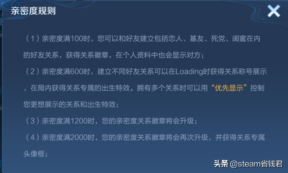在王者荣耀里面,玩家可以与游戏好友建立恋人,死党等亲密关系,建立了亲密关系之后能够获得关系徽章,在游戏个人资料里面也会显示对方。