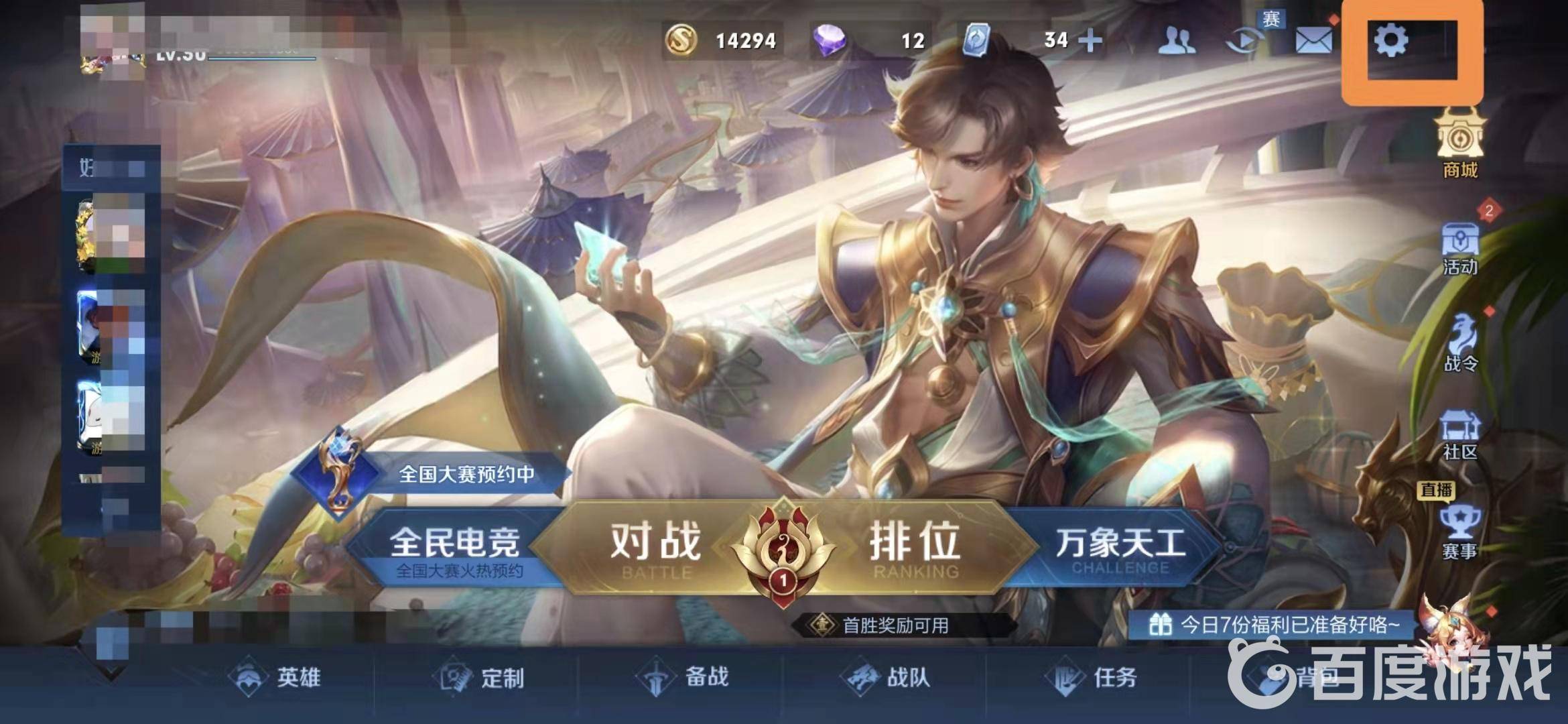 在游戏大厅,点击右上角的设置按钮。