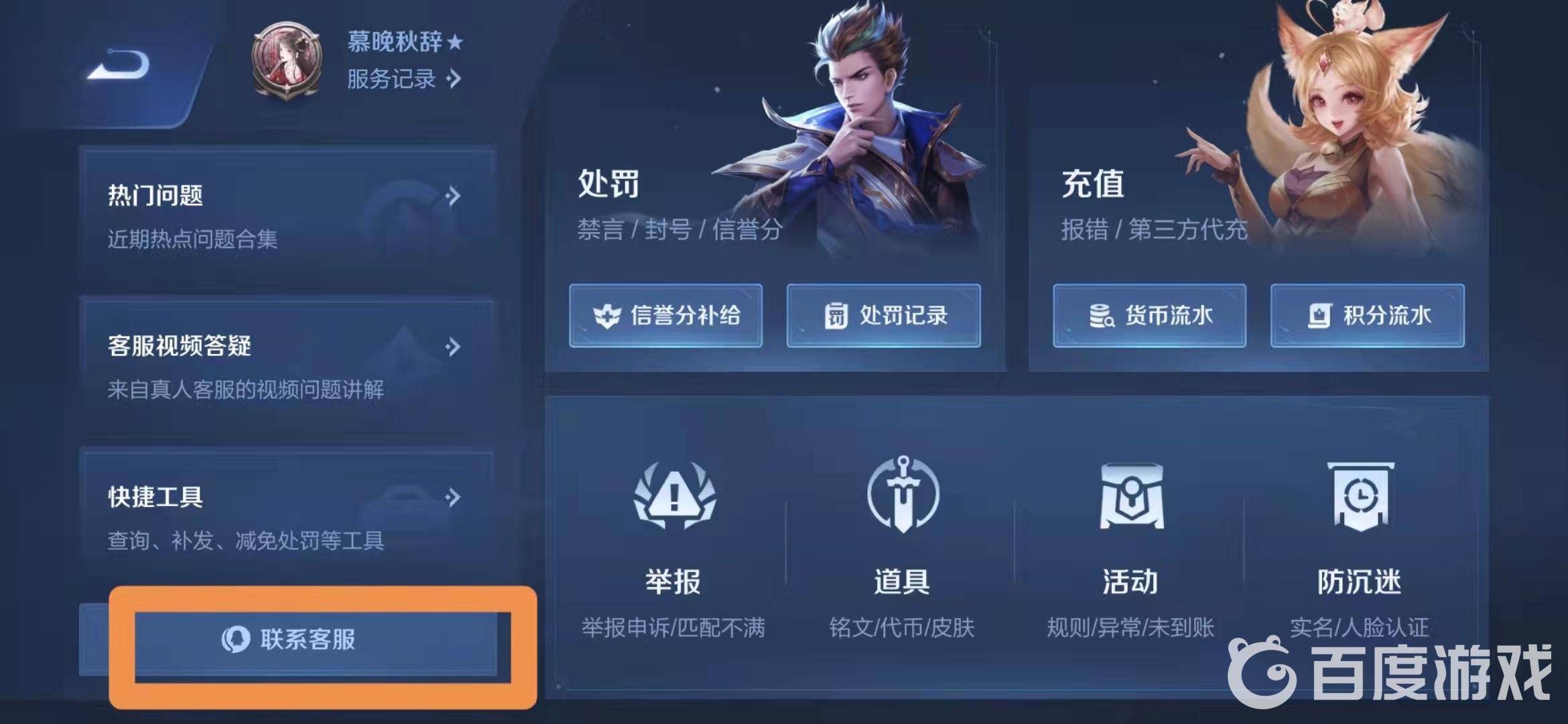 5.点击进入客服专区界面,找到联系客服
