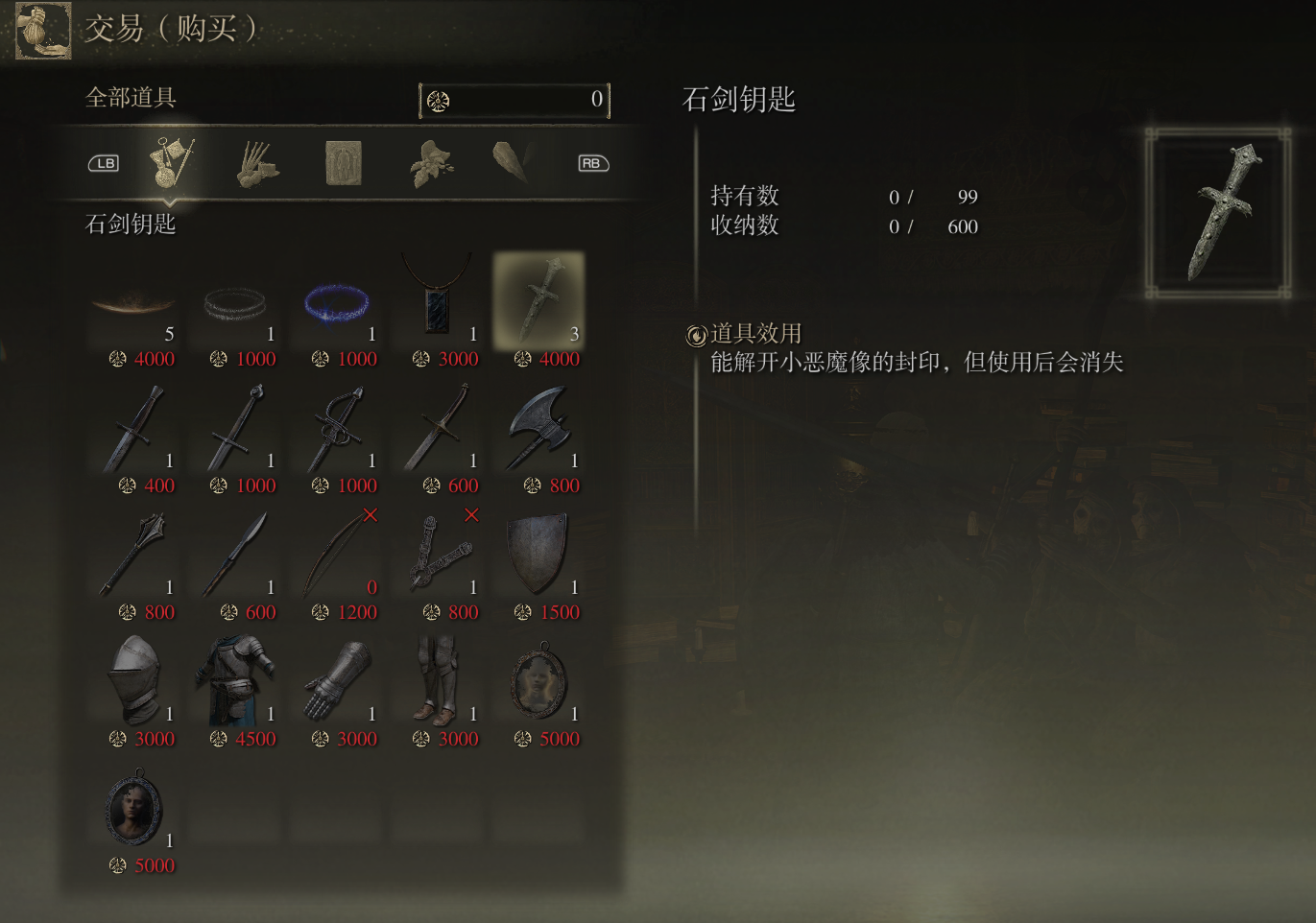 另外啜泣半岛最左侧的赐福“隐居商人的破屋”处也可以购买(价格2000),较便宜。