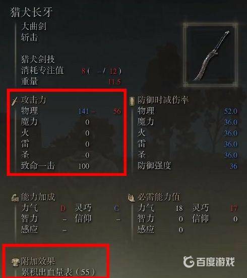 《艾尔登法环》猎犬长牙加点是:物理攻击+332,魔力攻击+63。