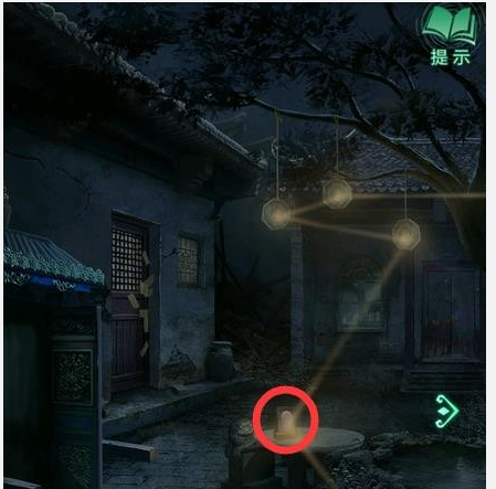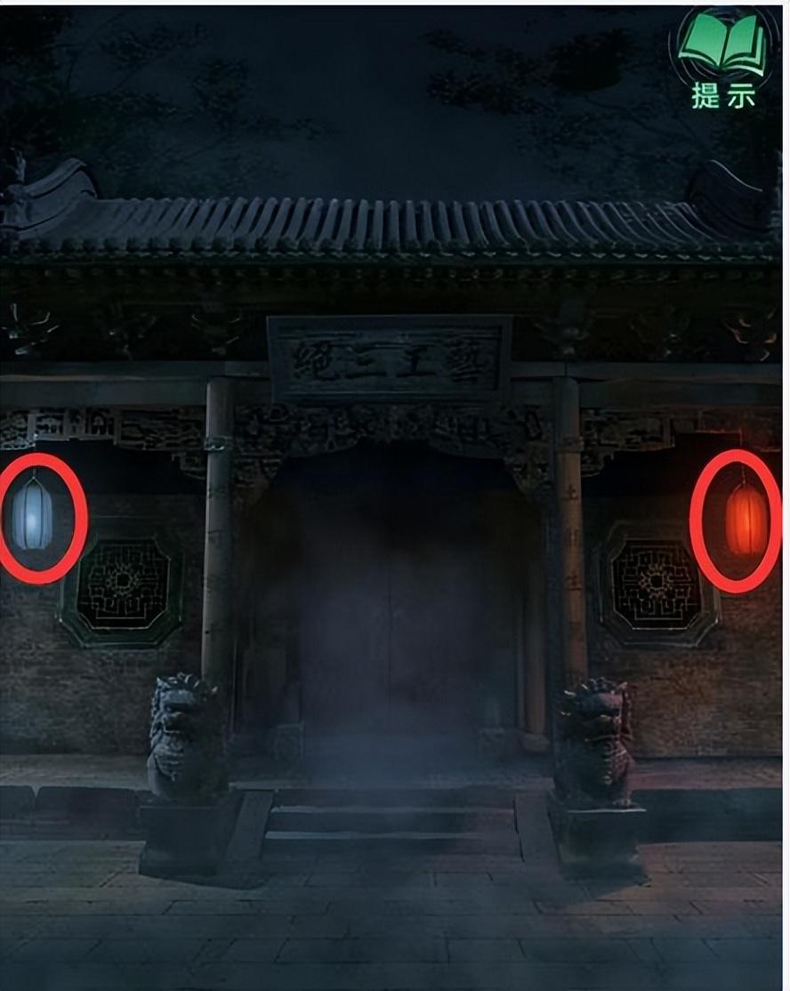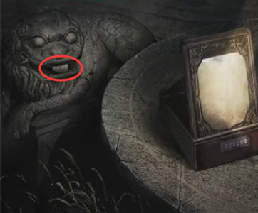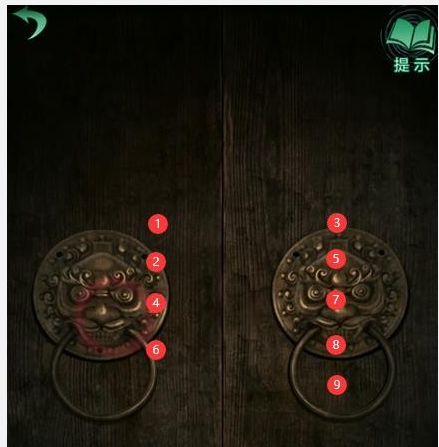 查看门口的两个石狮子,左边写着1246,右边写着九鬼扣门,需要扣门9下,左边是1246,右边是35789,按照此顺序敲击门环,进入院子。