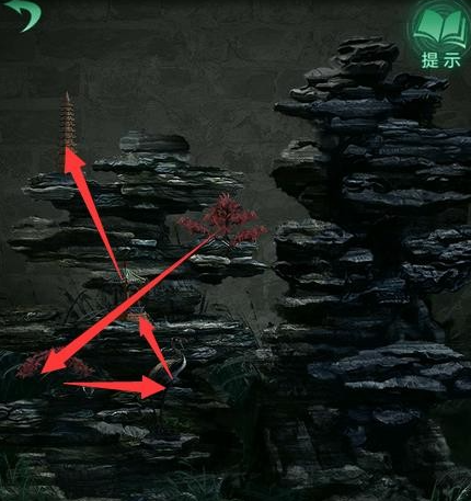 返回右边的院子,点击左下角的假山,对照图纸上的信息,依次点击假山上的物品,获得【三叉戟】。