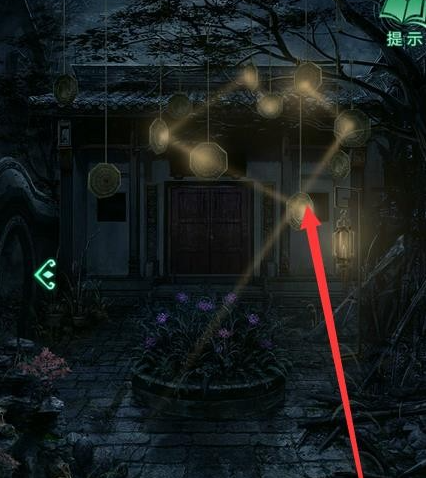 使用【三叉戟】点击院子中吊起来的镜子,完成小游戏