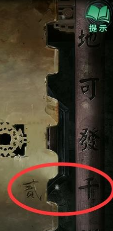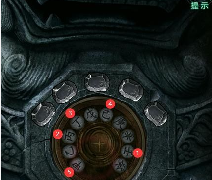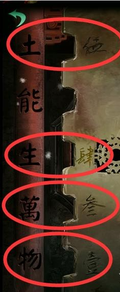 返回大门外面使用【尺子】对照门两边的柱子,找到每个数字对应的文字,记住每个字的顺序,点击右边的石狮子,将【拨号盘外壳】安装上去,依次转动对应的字(和左边的玩法一样),获得【钥匙】。