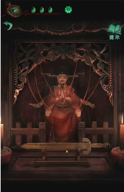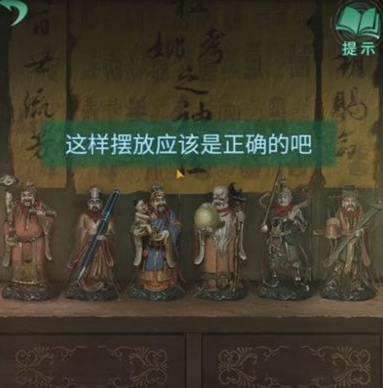 点击神案上的雕像,对照书中的信息,将【红圆珠笔】放入文曲星手中,并从左往右依次摆放雕像