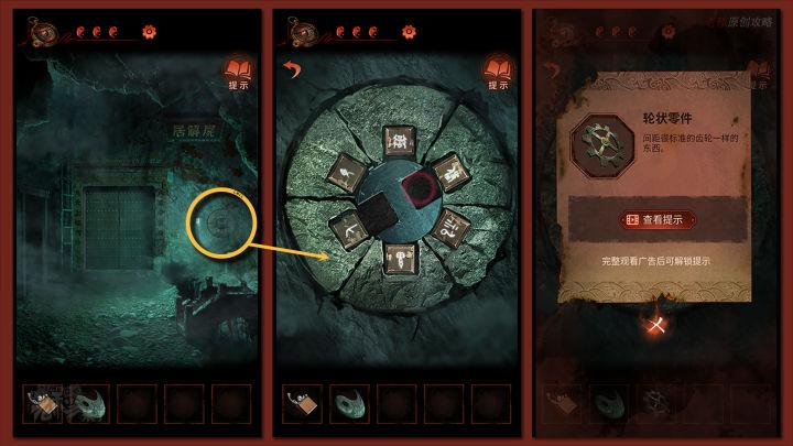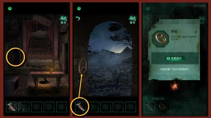 【男主视角】:左侧的石门打开,用【多功能工具】去拧动机关锁,拾得【手轮】