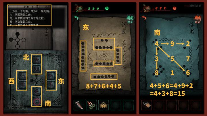 【女主视角】:解锁匣子的密码其实就是合理的数【河图】和【洛书】上的圆圈的数量根据线索【上为北,下为南,白为阳,黑为阴】