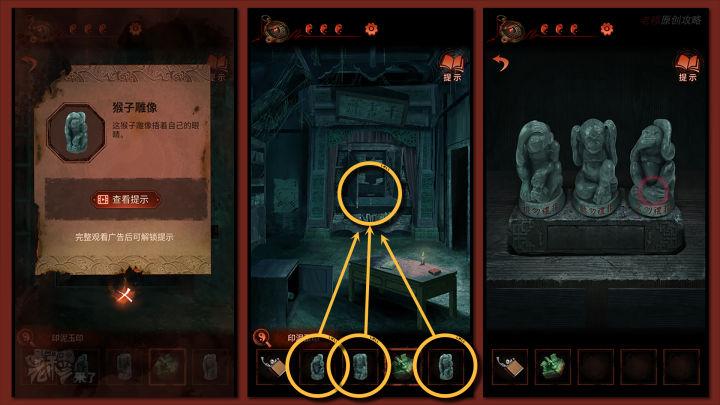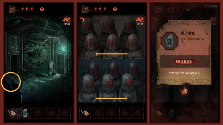 【女主视角】:来到【千书斋】,将三个【猴子雕像】放置在机关台子上