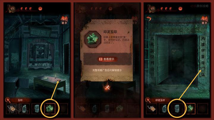 【女主视角】:来到【千书斋】,用【玉印】蘸印泥,得到【印泥玉印】,回到大门位置,用【印泥玉印】把牌匾右侧空白的位置盖印