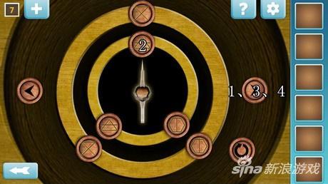 10、按照图中标示的数字来点按按钮,按照1234的顺序依次将指针转到数字所在位置,即可破解密码盘,完成后拿开木板,即可过关。