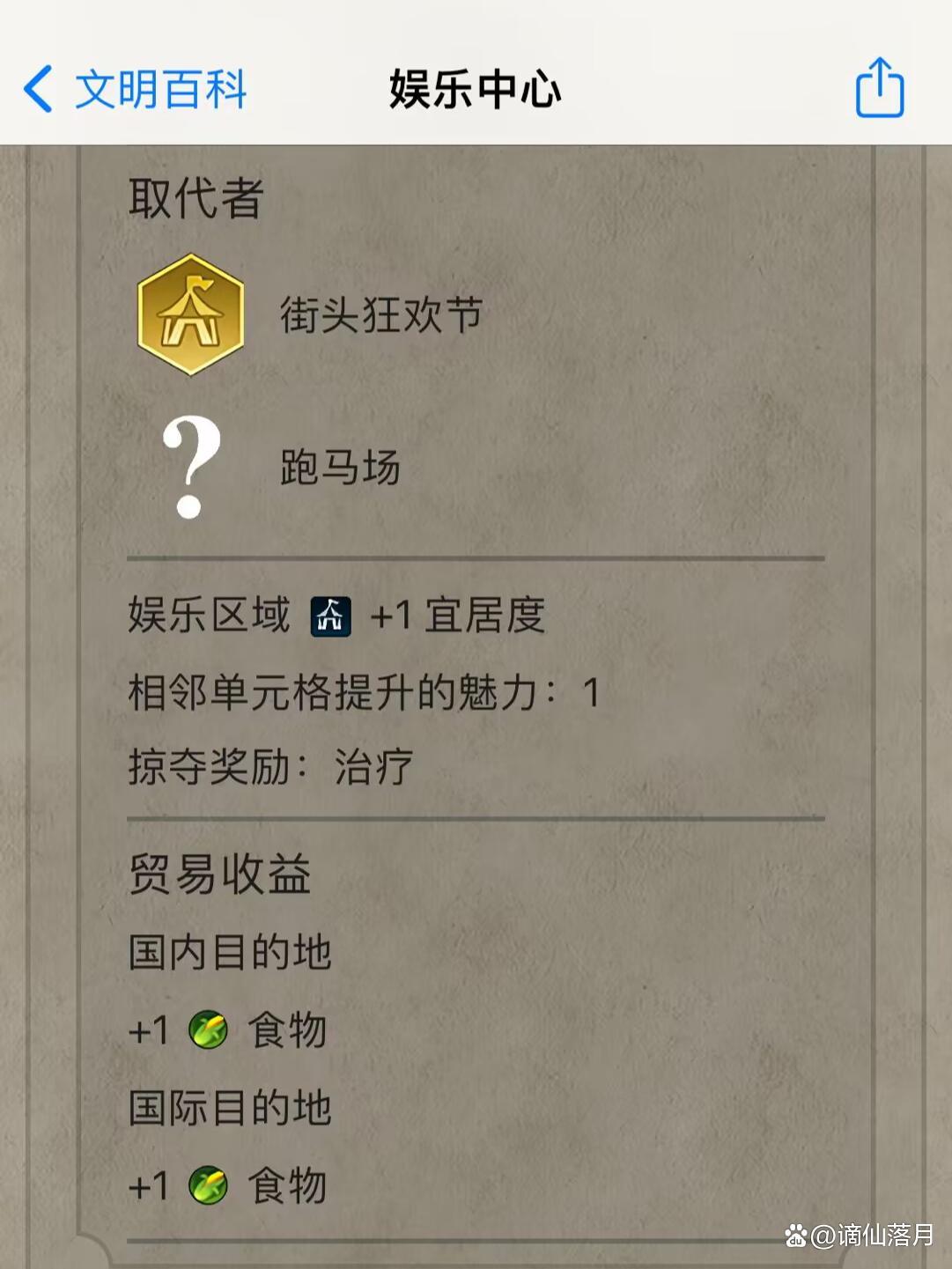 娱乐中心区域(+1宜居度)-市政树“游戏与娱乐”解锁。只对本城有效