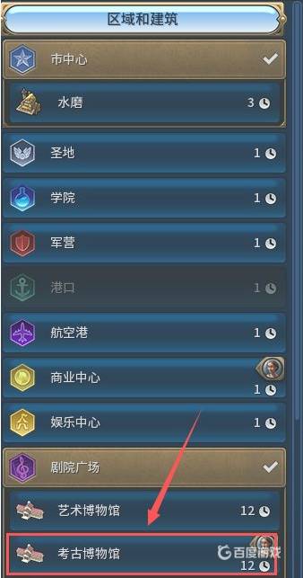 4,在生产菜单中选择建造“考古博物馆”。