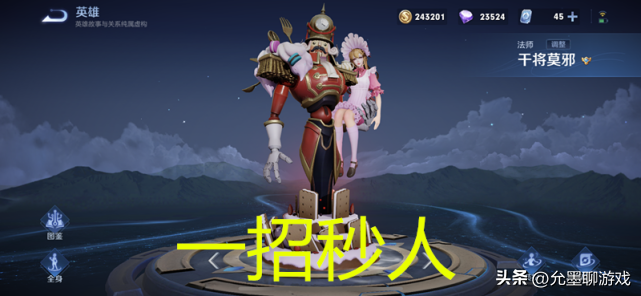 这位法师虽然在峡谷中热度不是很高,但是他胜率一直都不低,但是在高端局甚至职业赛场干将却很受欢迎,就是因为他的强度很高,干将的一技能不仅可以击退正面的敌人,并且拿到击杀或者助攻都可以永久增加自身法抗,加上大招的强化技能伤害,满级的干将莫邪一个技能就可以打出秒人的伤害,而出了专精装的干将可以频繁的使用四技能,团战可以打出成吨的伤害,非常强势的一位爆发型法师。