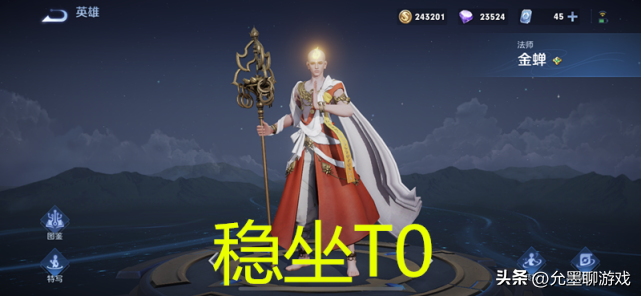 这位法师自上线以来,强度一直都不低,甚至有玩家说金蝉的强度已经超标了,其实还是因为技能属性太过于强势,金蝉的被动自带减伤效果,同时一技能可以限制敌人的位移技能,并且附带减速效果,大招可以打出控制,并且队友还可以享受金蝉的被动属性,金蝉不管是留人能力,还是团战的强度,在法师当中都处于上游的水平,这位法师也是受到很多巅峰赛玩家的喜欢,目前已经稳坐T0榜单。