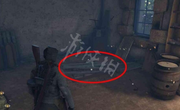 步枪工作台在地图北部,河流南岸的一栋建筑内。从屋外的藤蔓进入二楼即可找到。