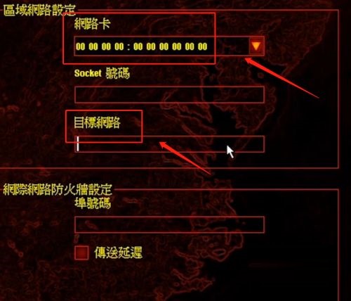 第二步:确保想要和自己联机的电脑在同一局域网内,之后进入网络设置界面,这里设置目标网络,设置自己的电脑和想要一起联机的电脑(如图所示)。