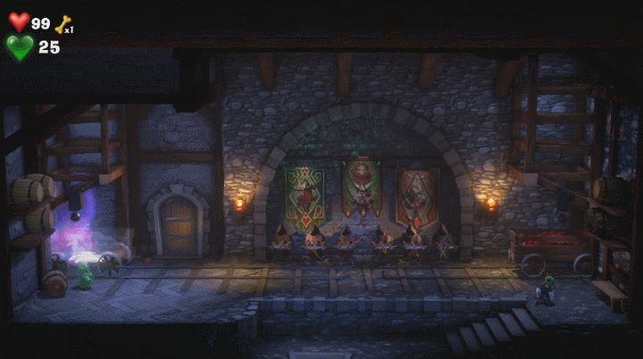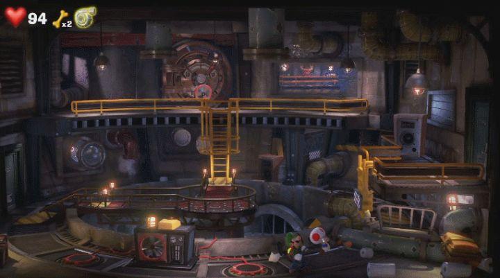 整个游戏最卡我流程的一关,花了整整1个小时。不过一旦发现解谜的关键点后,剩下的问题都是迎刃而解。这层的关键点就是,各个摄影棚的道具,很多是可以通过吸尘器吸住,再通过电视一起传送出来,带到另一个摄影棚的。例如在别的摄影棚取得的火把,可以带去被蜘蛛网粘住的摄影棚的地方烧掉蜘蛛网。除此之外,通过摄影机看到的世界会有所不同,灵活通过傀路易吉在摄影机的世界中的活动来拿到自己需要的道具也是过关关键。因为流程太长,无法做成gif图,这里如果有具体某个摄影棚卡住的地方就不单独解说了,有需要的朋友可以查询我的流程攻略视频。