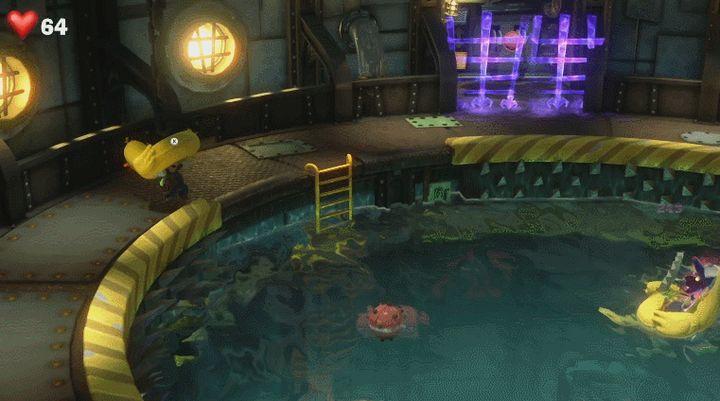 第5层其实也算是新手引导关卡,不过有人问过我最后这个路易吉要怎么救,所以还是讲一下,先控制傀儡路易吉走到阀门处,通过吸尘器将牢笼升起,保持吸尘器按住不动,然后切换至路易吉,控制路易吉出来,即可过关。注意傀儡路易吉是不能碰水的哦。