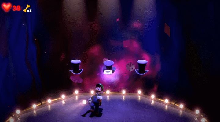 虽然这篇攻略我并不介绍如何获得宝石,不过这个点还是挺让我赞叹老任的设计功底的。。。扯远了。接下来说说boss战,首先所有的扑克牌都是可以利用跳跃击落的。。。