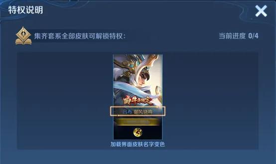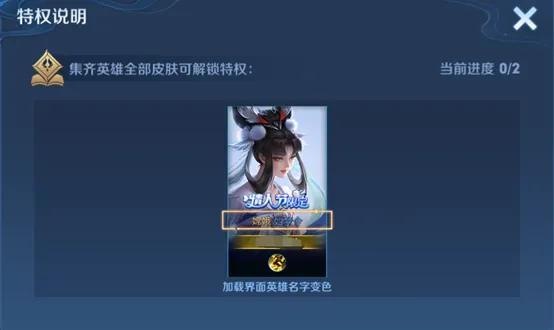 4.英雄皮肤集齐特权:加载界面英雄名字变色;套系皮肤集齐特权:加载界面皮肤名字变色;