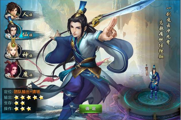 仙剑ol四个职业,分别为人族,仙族,神族,魔族。四个职业的各有特点,根据自己的喜好选择职业。人族和仙族输出高,在操作技术上要求不高,生存低于其他两族,组队战斗时,需要神族的加血配合。战斗在第一线的魔族,则是当之无愧的坦克,抗击打能力强,输出略逊人族。飘逸的仙族,就是俗称的奶妈,治愈系职业,操作要求高,不够灵巧的话,只能给自己加血,帮不上战友了。