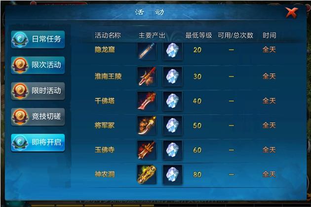 19级获得宠物。20级开启隐龙窟,奖励装备碎片,还有洗练石,简单本单人轻轻松松过,这千万别错过。