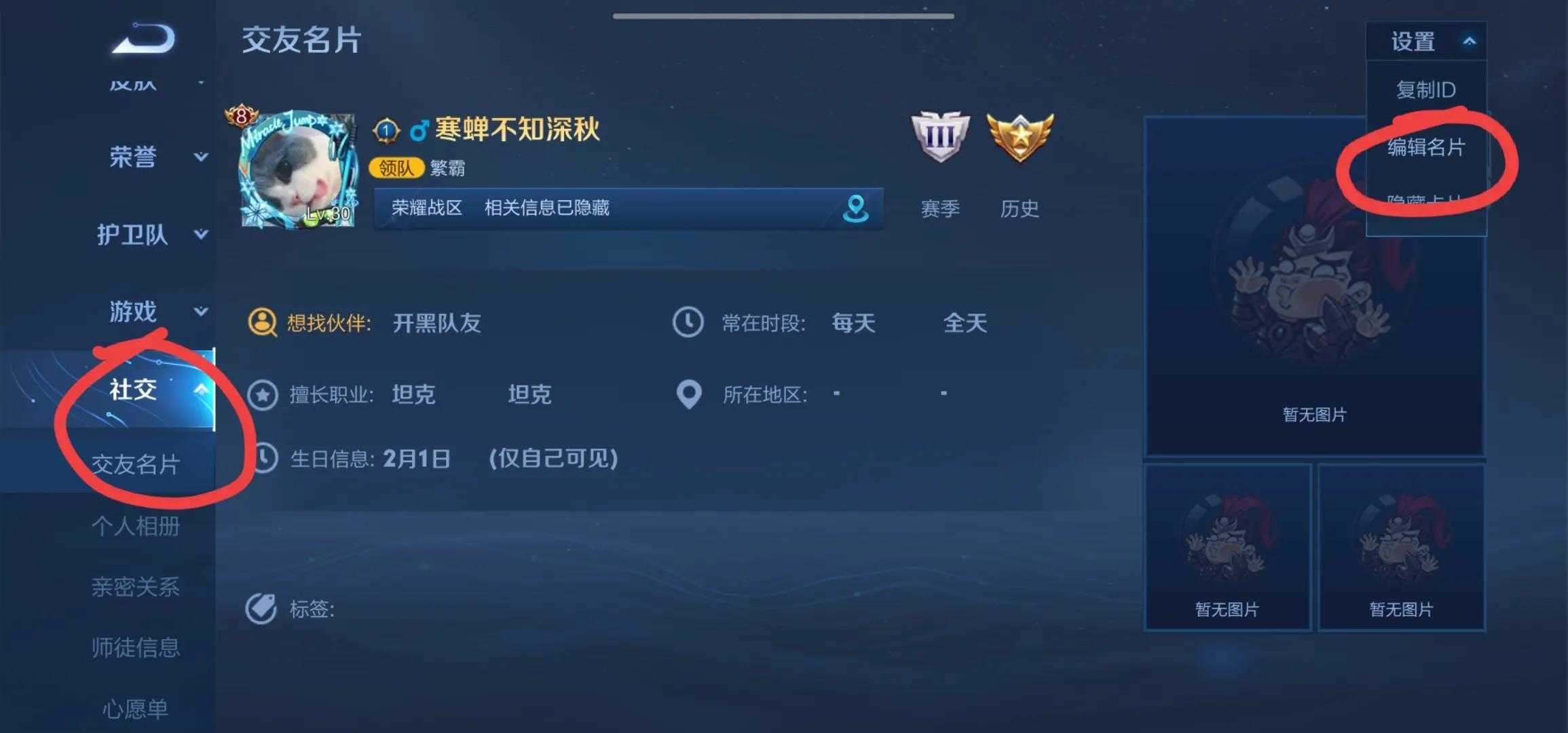 关于王者生日的设置步骤:点击游戏大厅头像进入个人主页→社交→交友名片→点击右上角的设置→编辑名片。就可以设置属于你自己的生日了