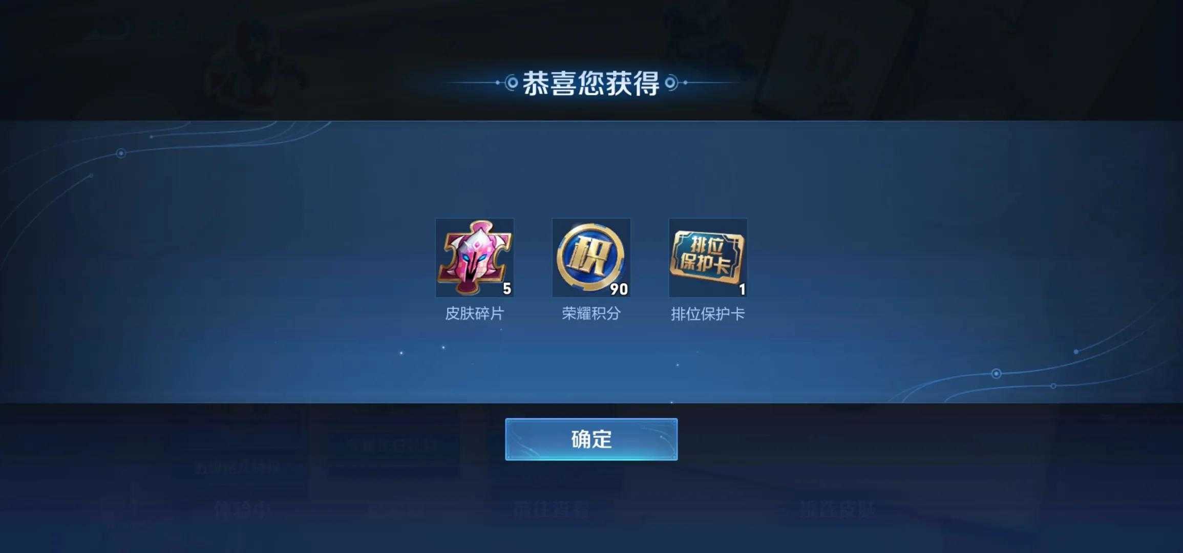专属生日礼物可以领5个皮肤碎片,90荣耀积分,还有一张排位保护卡。