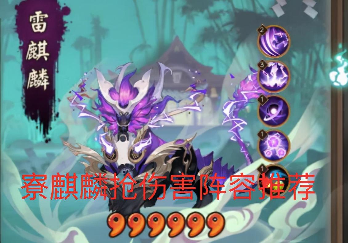 目前用于麒麟抢伤害的阵容还是麓丸的献祭阵容,但是因为有不见岳的加入,他提供的高额增伤效果用于麒麟也是有不错效果的,但是他的先机动画比较浪费时间,如果是击杀速度比较快,在一分钟内就击杀麒麟的阴阳寮就不太适合用不见岳来增伤了,最好用因幡辉夜姬来增伤,而击杀时间如果稍微长一点,一到两分钟的话,那么不见岳就是最好的选择了,所以大家根据自己所在的阴阳寮麒麟击杀顺序来选择适合自己的阵容就行。