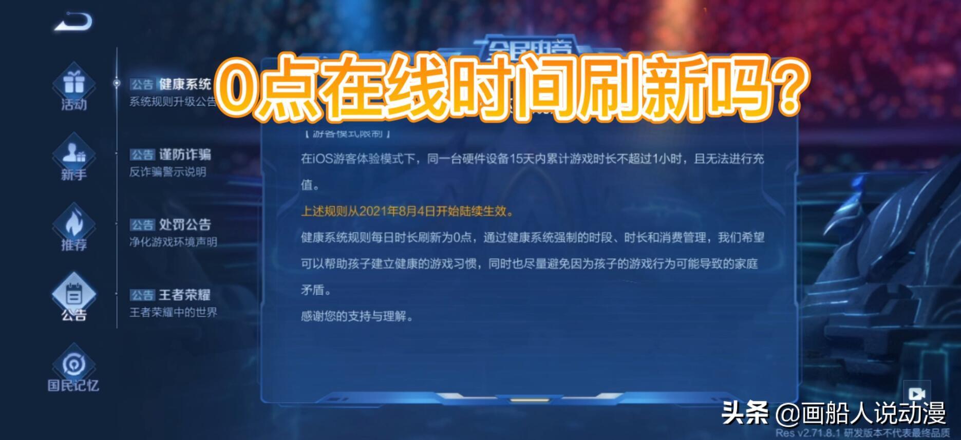 而且在2021年8月4日王者荣耀对监看系统进行了升级,未成年用户每日22时至次日8时禁玩,国家法定节假日每日限玩2小时,其他时间每日限玩1小时,健康系统规则每日时长刷新为0点。