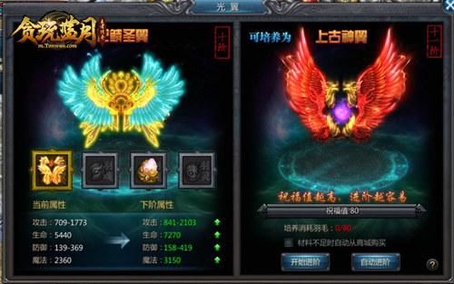 翅膀系统可以为人物角色提供大量的生命及攻击加成,但每培养一次翅膀都有概率进阶失败,更让人难受的设定是进阶失败所产生的祝福值于每天0点刷新,所以每一阶的翅膀需要多少羽毛一直都是玩家的热门话题。
