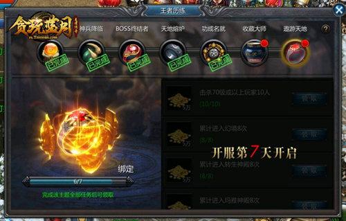 这个是王者历练任务中最后一个任务,于开服第七天正常开启。这里小编说明一下情况,因为任务在每个区的类型都是不同的,所以任务内容需要以每个区中游戏内容为准。