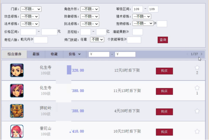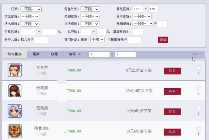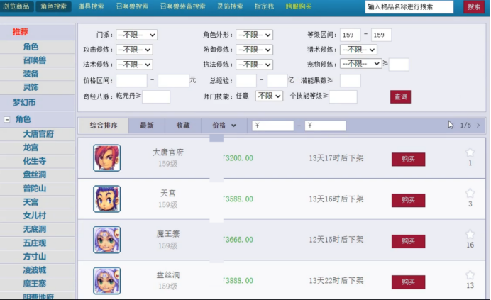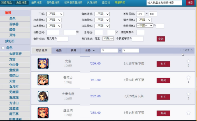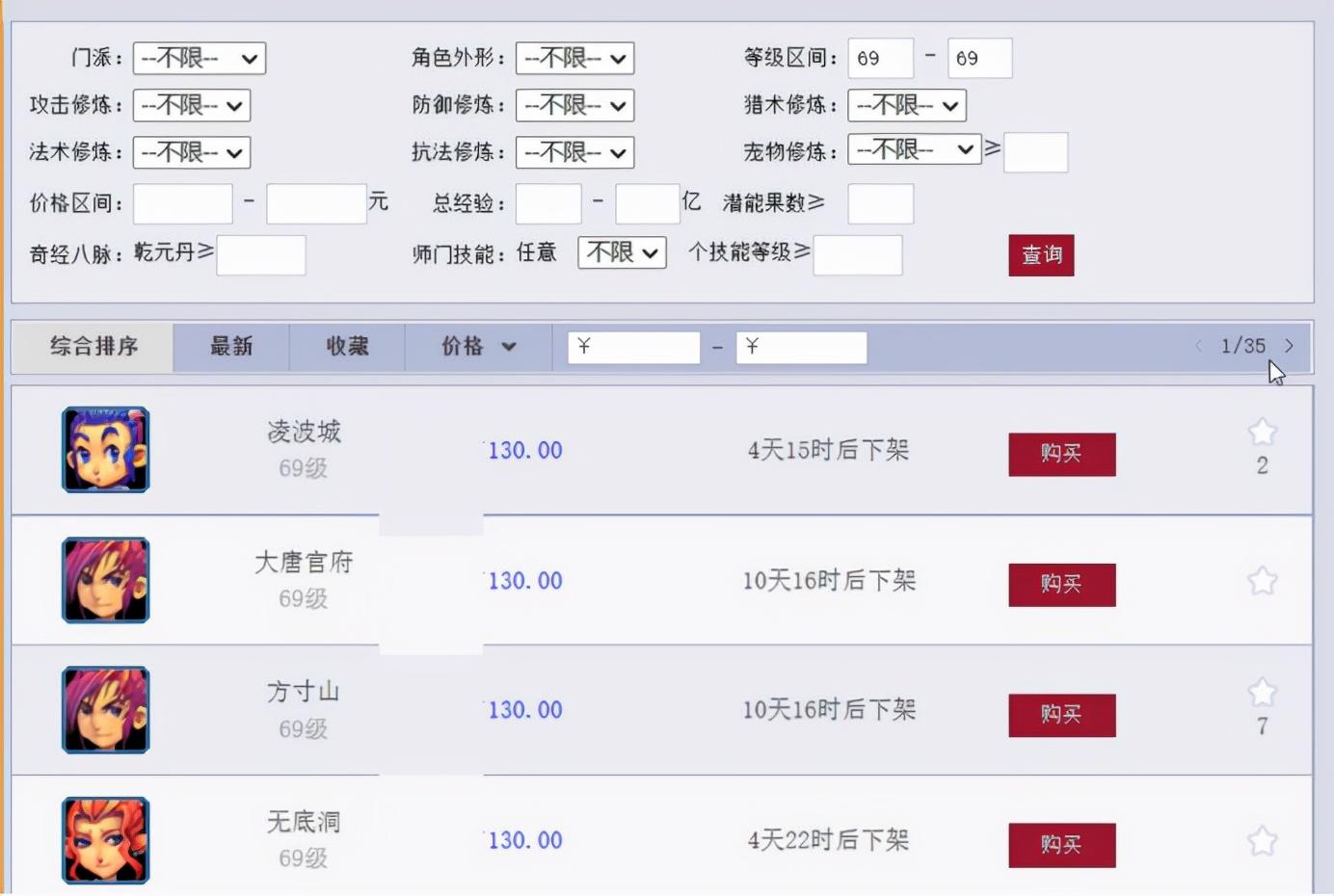 当然,也不是说别的区就不能玩了,所有的建议都只是相对而言,给大家做些参考,具体还得到你想玩的区去看看,建个小号上藏宝阁看看卖号的多不多,有个说法,一个等级的号如果超过20页,那大概率不是鬼区,能玩。