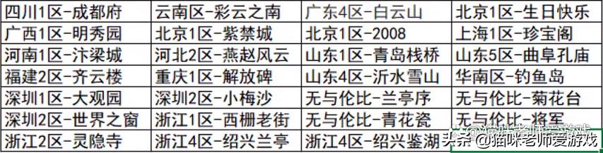 12个大区中相对比较不错的是曲阜孔庙、小梅沙、灵隐寺,小梅沙在12个大区中玩家反馈比较不错,有大火区潜质;灵隐寺底蕴比较厚,很稳定,曲阜孔庙口碑也很不错,值得一试。