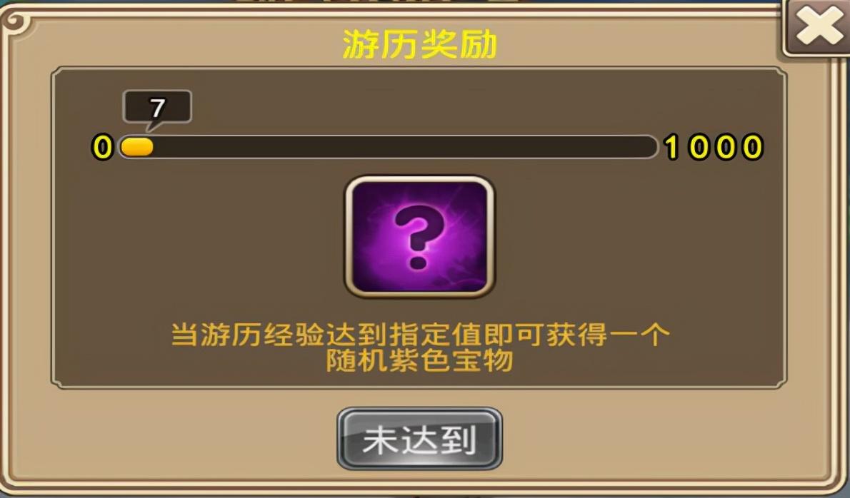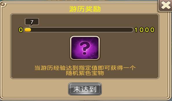3、玩家累计点数每当达到1000点的时候,即可以领取游历奖励,可以随机获得一个紫色宝物。