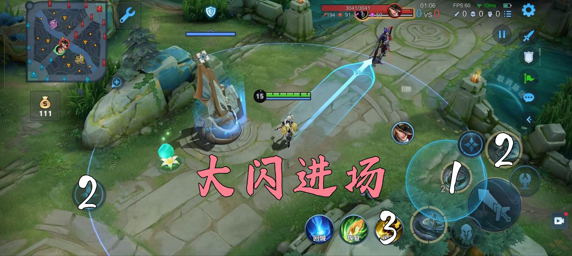 所以当敌人在自己的输出范围之外,可以用普攻锁敌接近,从而实行接下来的连招,当然了,也可以直接接技能大闪,这就是进阶操作了。
