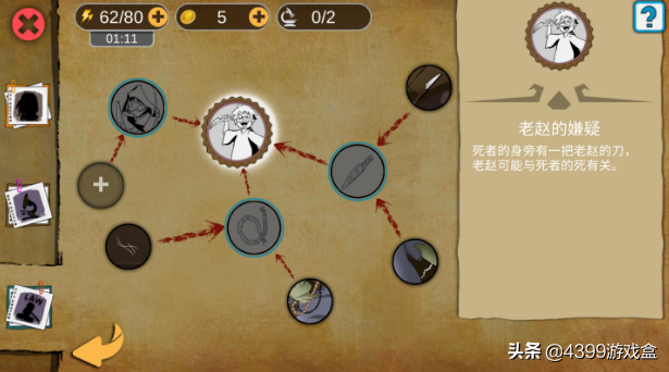 各种线索有的是有用的而其他的也只是干扰我们判断的,如果想尽快找出凶手的话还是要多动脑筋思考一下哪些线索是有用的并将其填入其中,当然线索不是直接就能给你的,你需要做出自己的分析。不然只会白白分析没用的线索浪费时间。