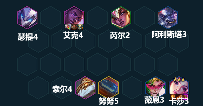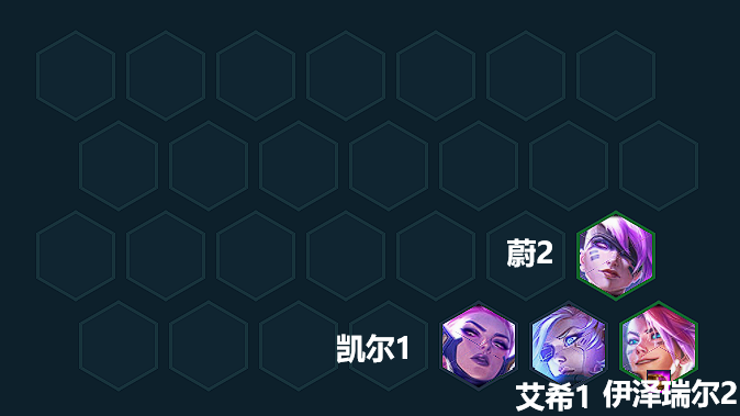 阵容质量:ez和蔚2星即可,最好走连胜,如果场面质量不足以连胜,记得像图中这样扎堆站,集火对方同一个人造成快速减员。